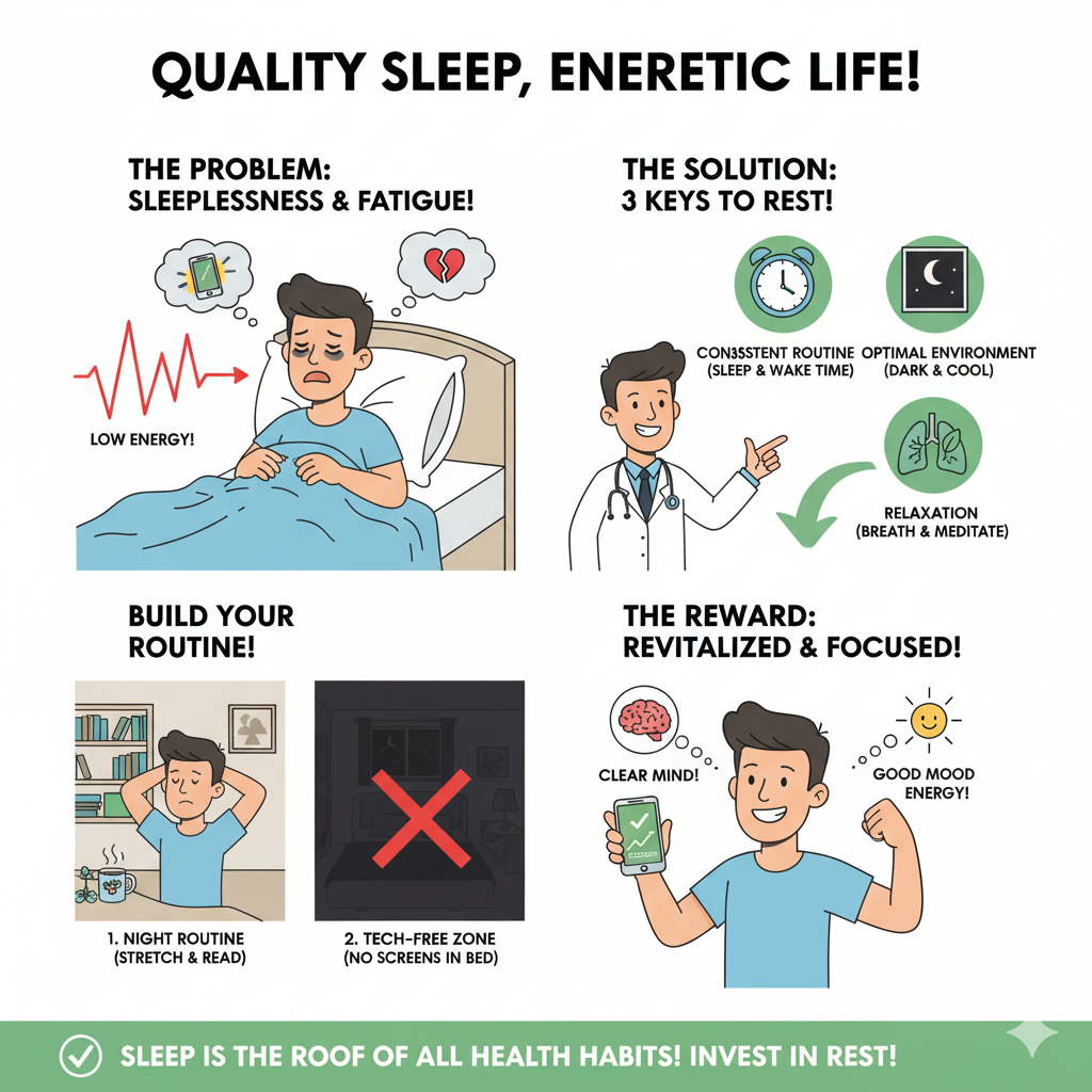 수면의 질은 루틴의 질입니다. 같은 시간에 자고 일어나는 것부터 시작하세요. 작은 변화가 큰 다음 날을 만듭니다.