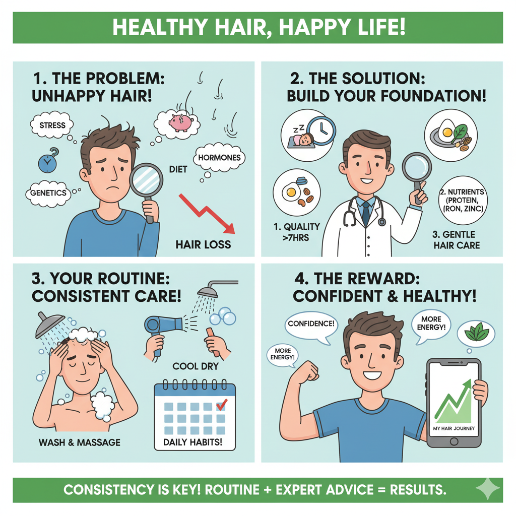 탈모 관리는 ‘만능템’보다 기본의 충실도가 좌우합니다. 생활·두피 루틴을 먼저 다지고, 필요하면 전문의와 함께 계획을 세우세요.