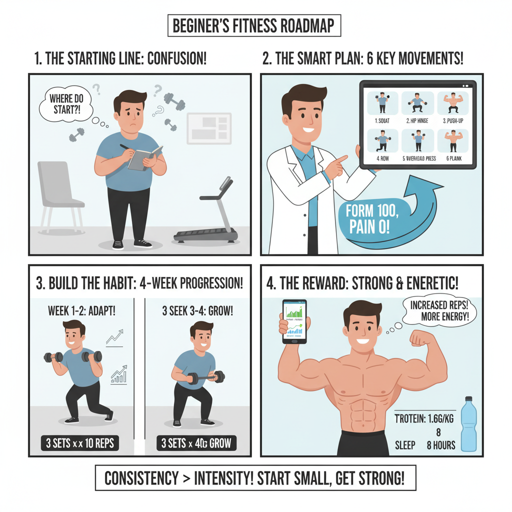 운동을 시작할 때 가장 어려운 건 ‘무엇을 얼마나 할지’입니다. 헬스장을 가지 않아도, 맨몸과 덤벨 하나로 전신 근육을 충분히 자극할 수 있어요. 오늘은 동작 6가지와 4주 볼륨 계획, 그리고 영양·휴식까지 ‘초보 전용’ 로드맵을 제시합니다.